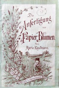 Dazu gibt es in dem Buch Anleitungen und auf einem gesonderten Bogen Vorlagen, allerdings leider keine Bilder, sodass ich aus der Vorlage und der Anleitung schließen muss, wie aufwendig so eine Blume ist. Darüber werde ich dann gelegentlich im PapierZen-Blog berichten. Hier wollte ich euch die leider völlig vergessene Marie Kaufmann vorstellen, die vor 130 Jahren ein Faible für Papierblumen hatte und den Ehrgeiz, diese möglichst naturgetreu zu gestalten. Das schließe ich aus der Anmerkung in dem Nachtrag zum ersten Heft, der Anleitungen für neue Blumen enthält und hier sind „Verbesserungen im Anfertigen zu einigen bereits früher beschriebenen Blüten angegeben, durch welche man grössere Naturähnlichkeit derselben erreicht“. Sie scheint außerdem sehr gut organisiert gewesen zu sein und dachte durchaus ökonomisch, das verraten die Verkaufs-Bedingungen, in denen klare Vorgaben gemacht werden bis hin zur Schreibweise der Bestellungen samt Muster dafür.