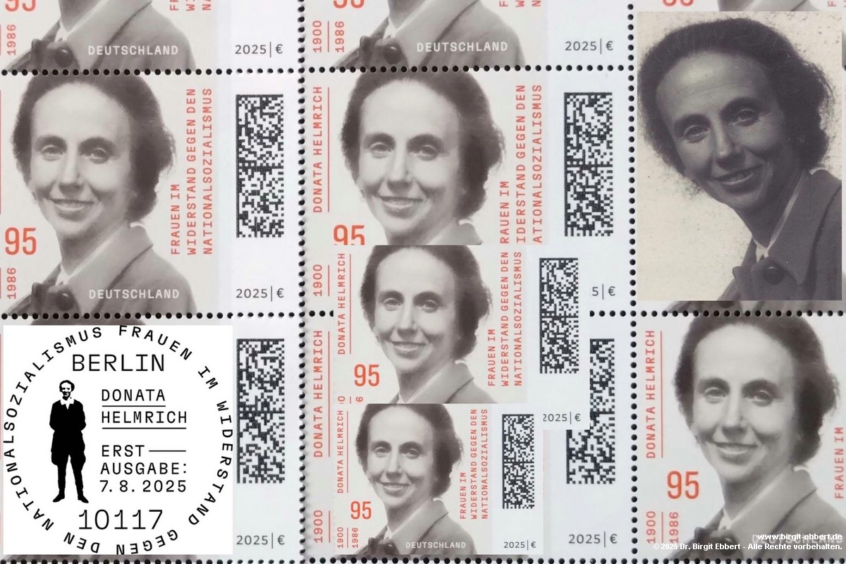 Mir war die Lehrerin und Übersetzerin Donata Helmrich bisher nicht begegnet, aber jetzt, als ich Briefmarken für die Weihnachtspost nachbestellen wollte. Weil das Weihnachtsmotiv von KI generiert war, was ich nicht unterstützen möchte, habe ich nach einer Alternative gesucht. Da es mir ein Anliegen ist, vergessene Frauen aus der Versenkung zu holen, dachte ich, dann verschicke ich die Erinnerung an eine von ihnen auf meinen Umschlägen mit Weihnachtskarten.